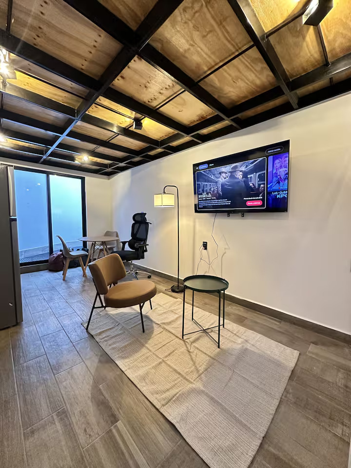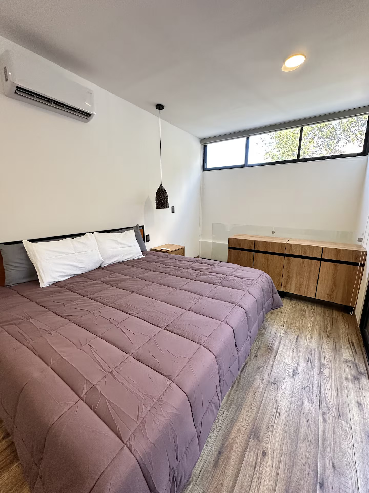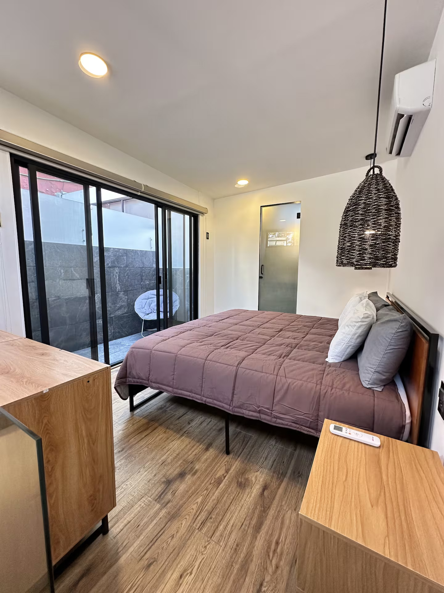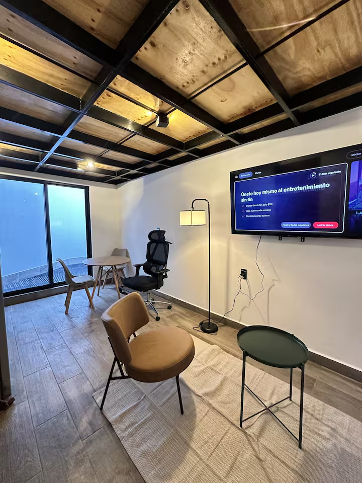 Descubre un espacio con carácter en el corazón de la Condesa, donde el diseño contemporáneo se mezcla con un estilo industrial cálido y funcional. Con aire acondicionado, colchón memory foam y cortinas blackout. Cuenta con dos terrazas privadas: una en el área del cuarto y otra en el comedor, ideales para relajarte o trabajar al aire libre.