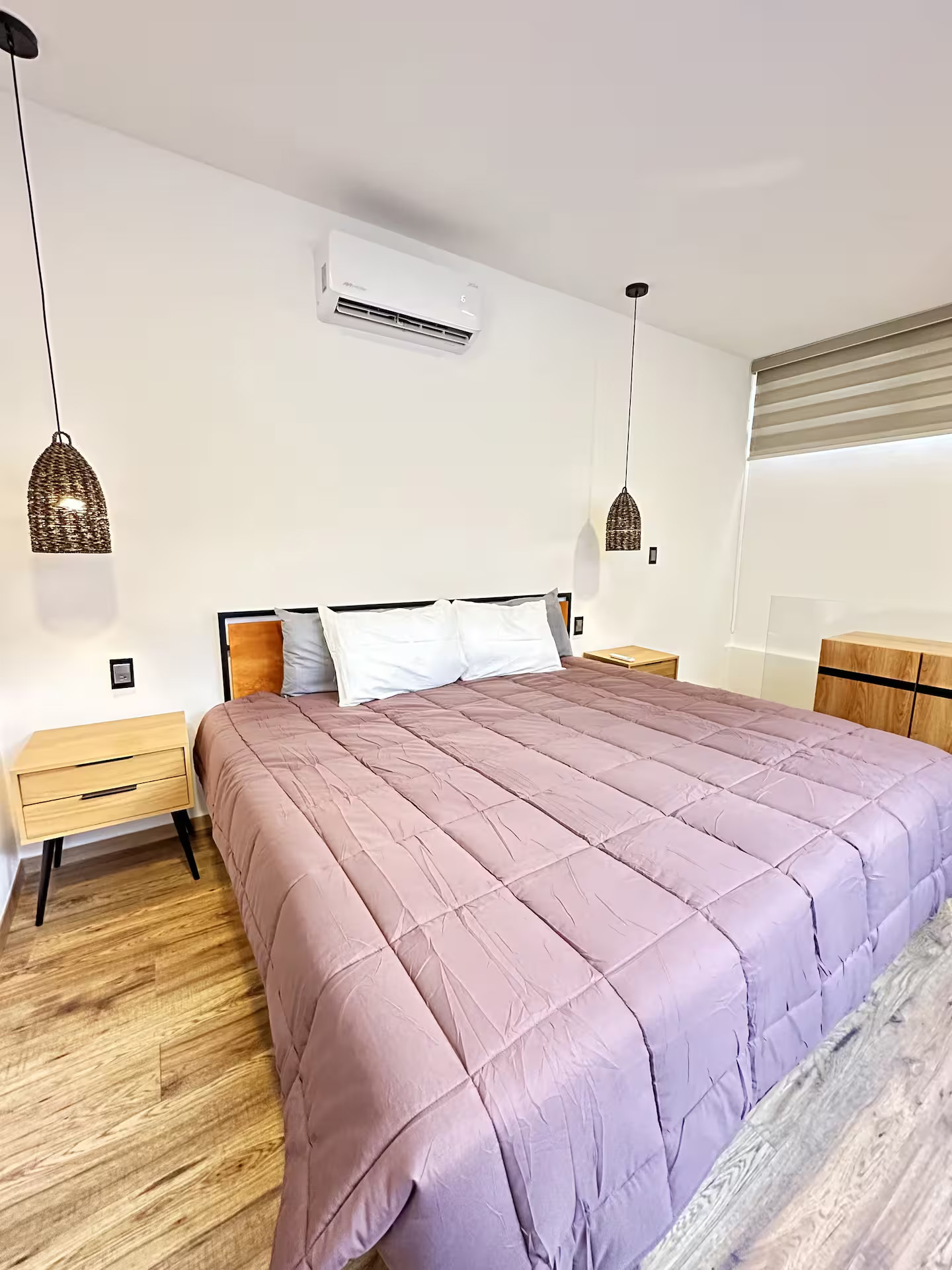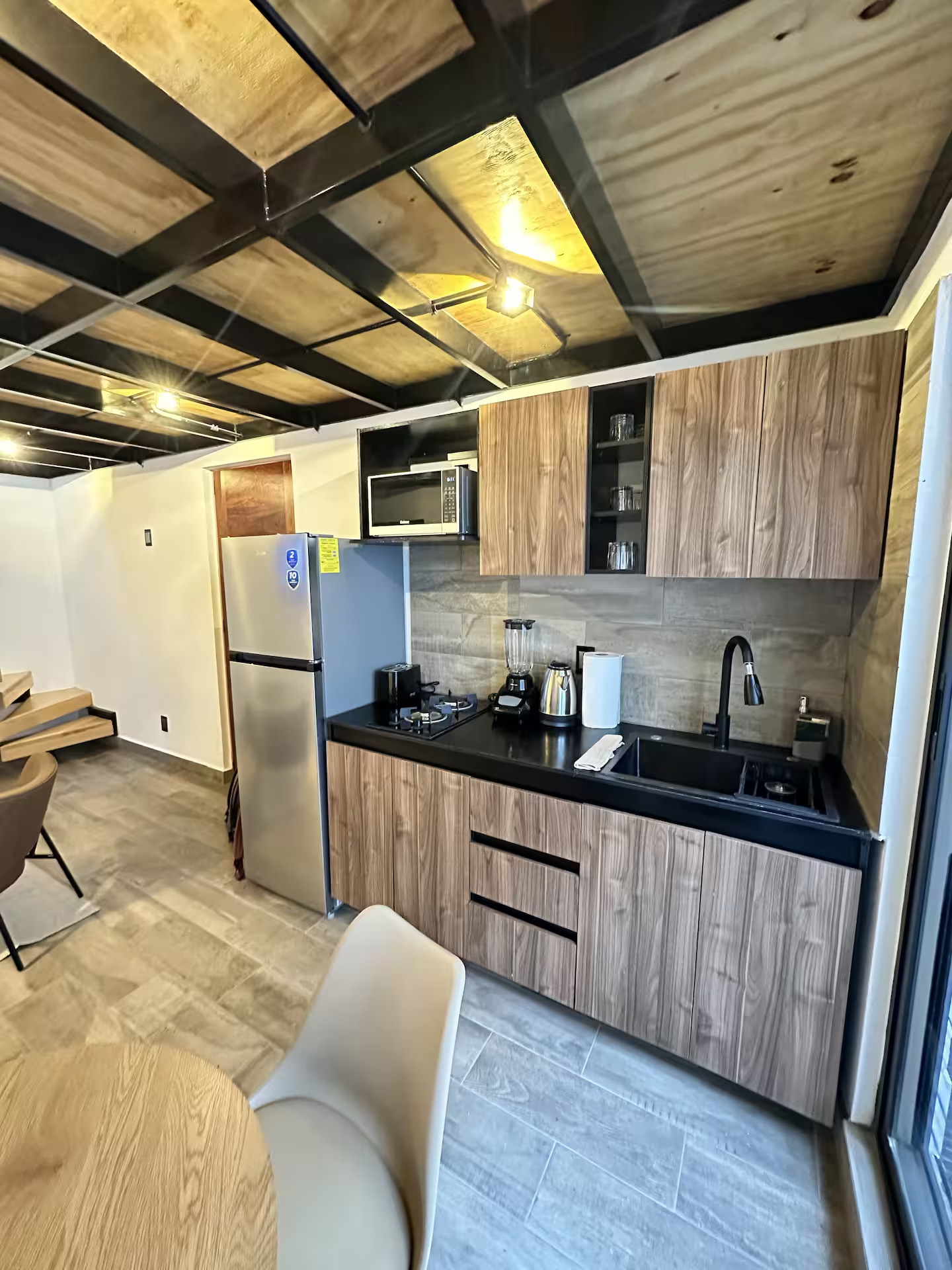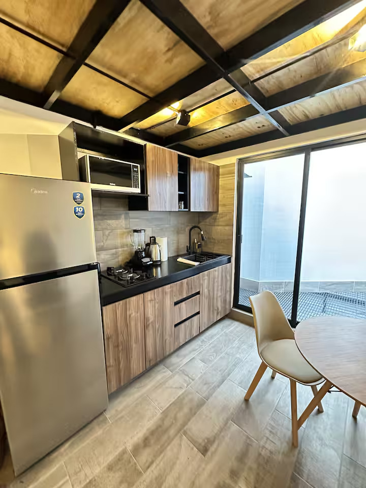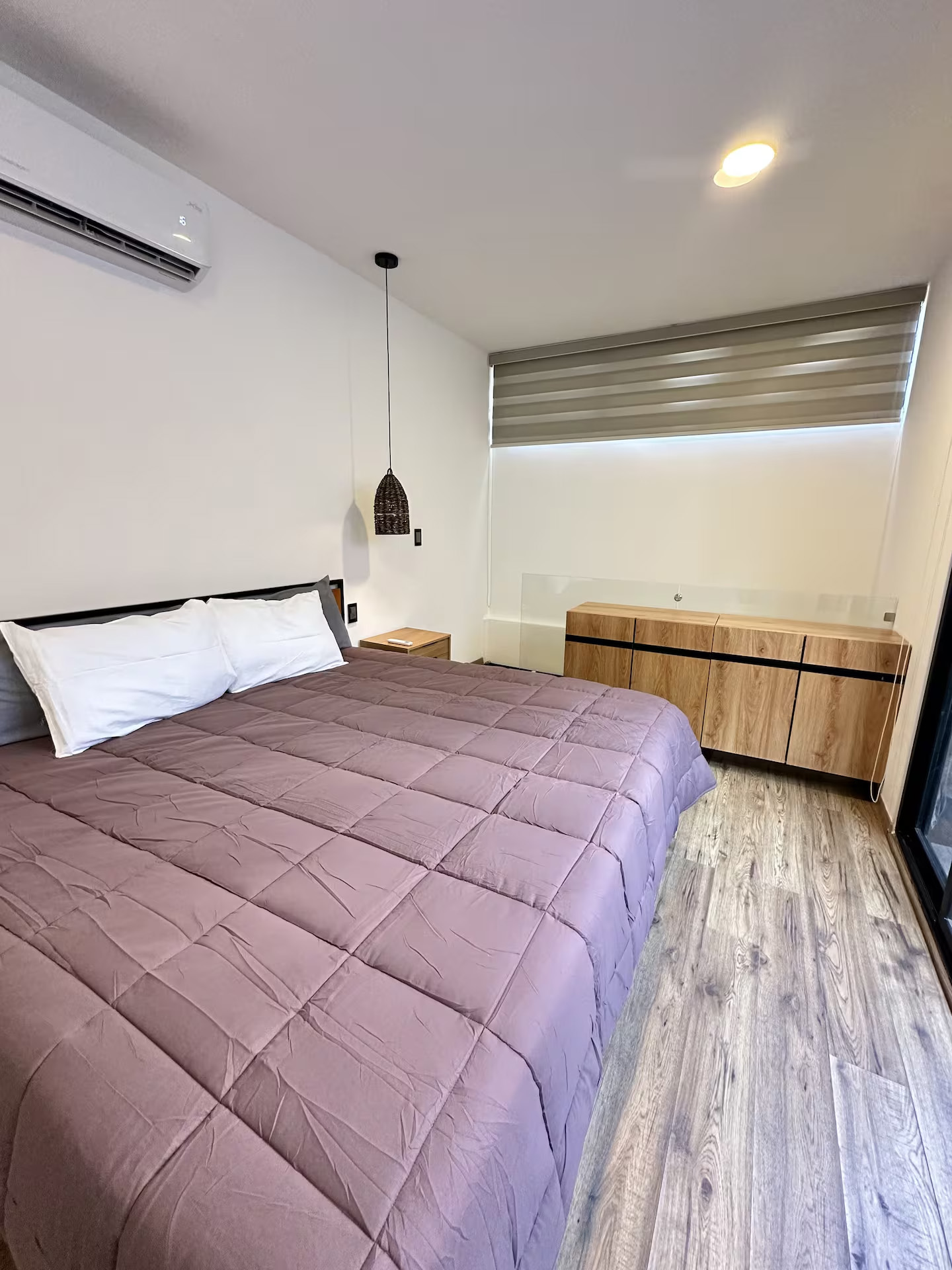 Descubre un espacio con carácter en el corazón de la Condesa, donde el diseño contemporáneo se mezcla con un estilo industrial cálido y funcional. Con aire acondicionado, colchón memory foam y cortinas blackout. Cuenta con dos terrazas privadas: una en el área del cuarto y otra en el comedor, ideales para relajarte o trabajar al aire libre.