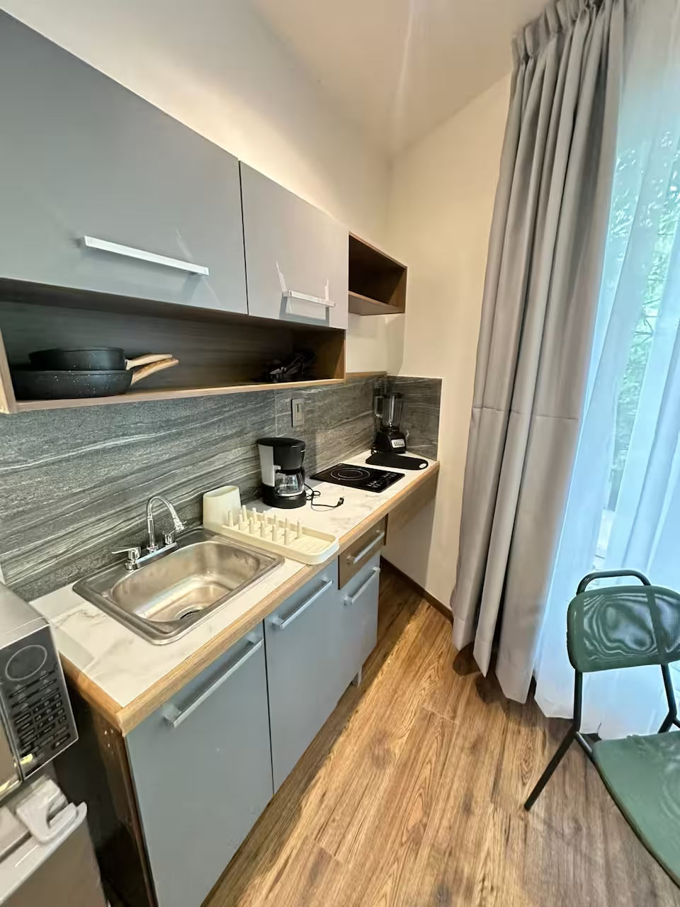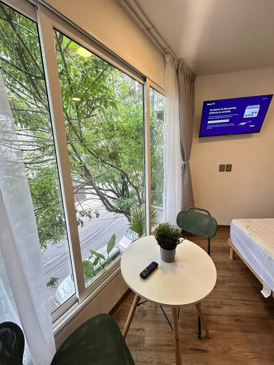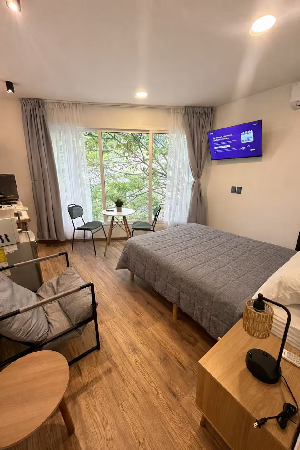 Descubre la esencia de la Condesa en nuestro exclusivo refugio, donde lo tradicional se fusiona con lo contemporáneo. Disfruta de un gran ventanal que enmarca una vista verde encantadora, perfecto para empezar el día con luz natural o relajarte al regresar. A solo pasos del Parque México, la calle Ámsterdam, la Plaza Condesa y el Centro Cultural Casa Lamm, estarás rodeado de restaurantes, cafés y boutiques. Vive la vibrante energía del barrio en un espacio lleno de estilo y cultura.