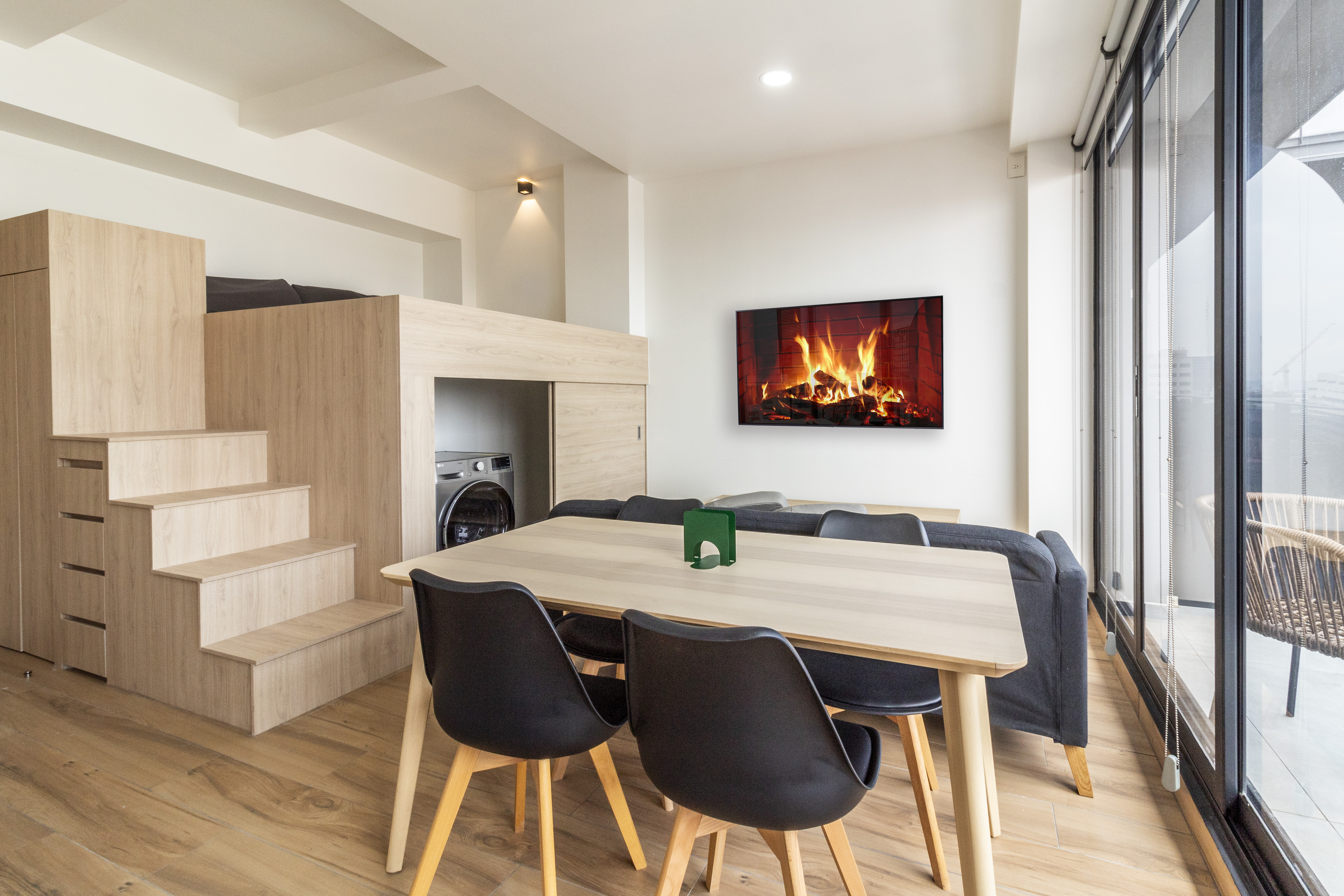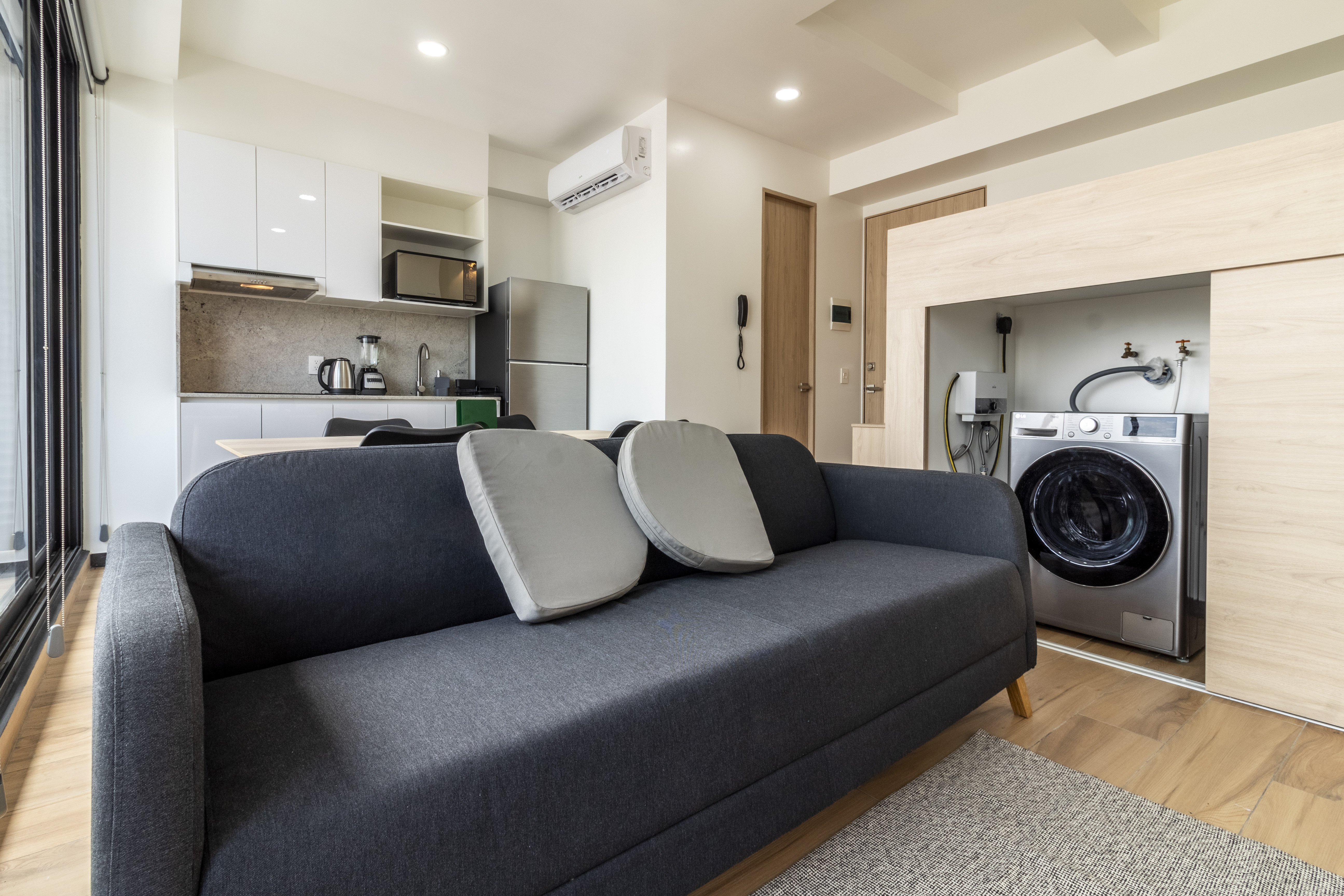 Loft moderno a una calle de Av. Chapultepec, con seguridad y recepción 24/7. Cuenta con internet de alta velocidad y un diseño práctico que combina estilo y comodidad. El edificio está rodeado de cafés, bares y restaurantes en una de las zonas más dinámicas de la ciudad. Nuestra terraza ofrece una vista inigualable, ideal para disfrutar del ambiente urbano desde lo alto. Una opción perfecta para quienes buscan ubicación privilegiada y confort.