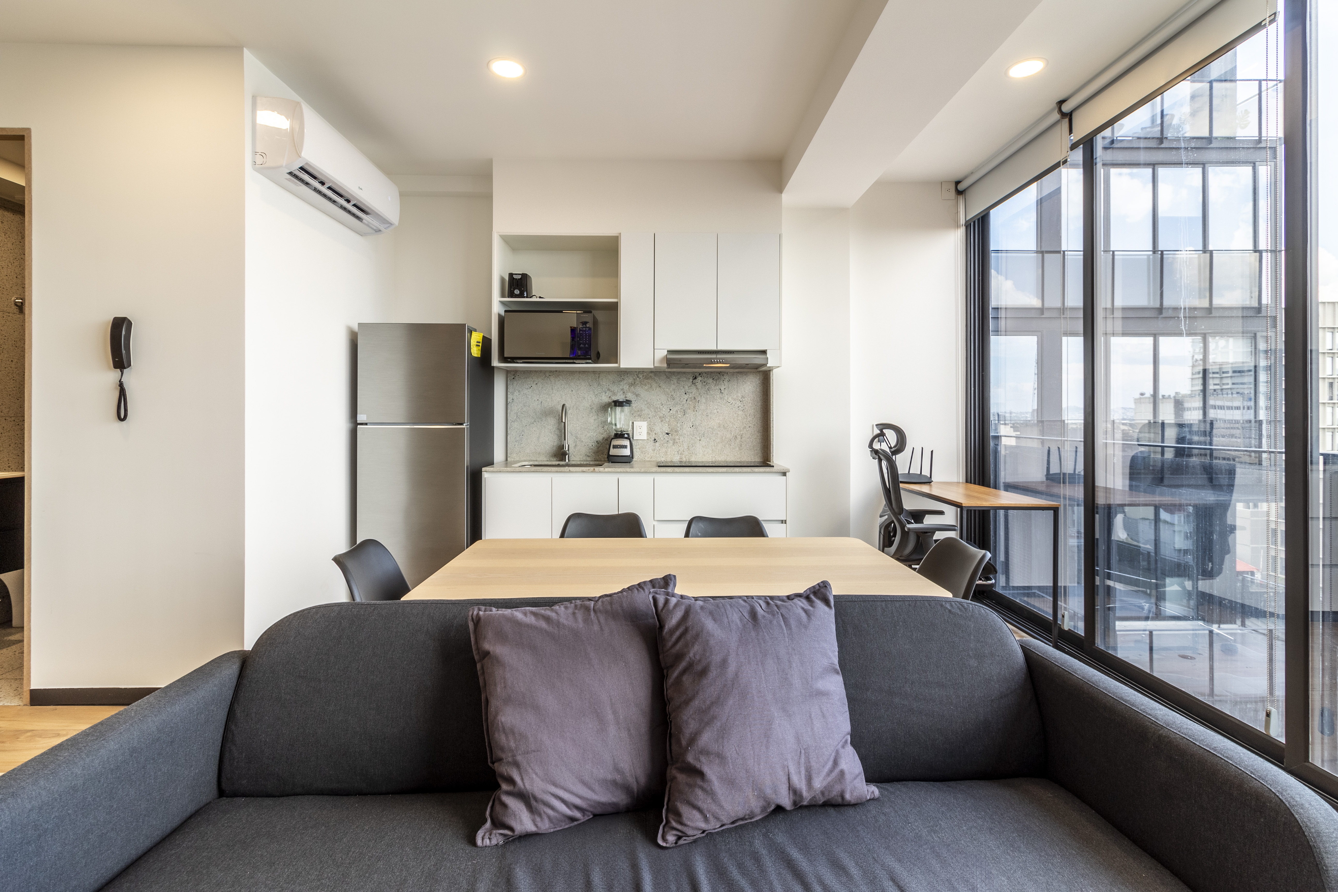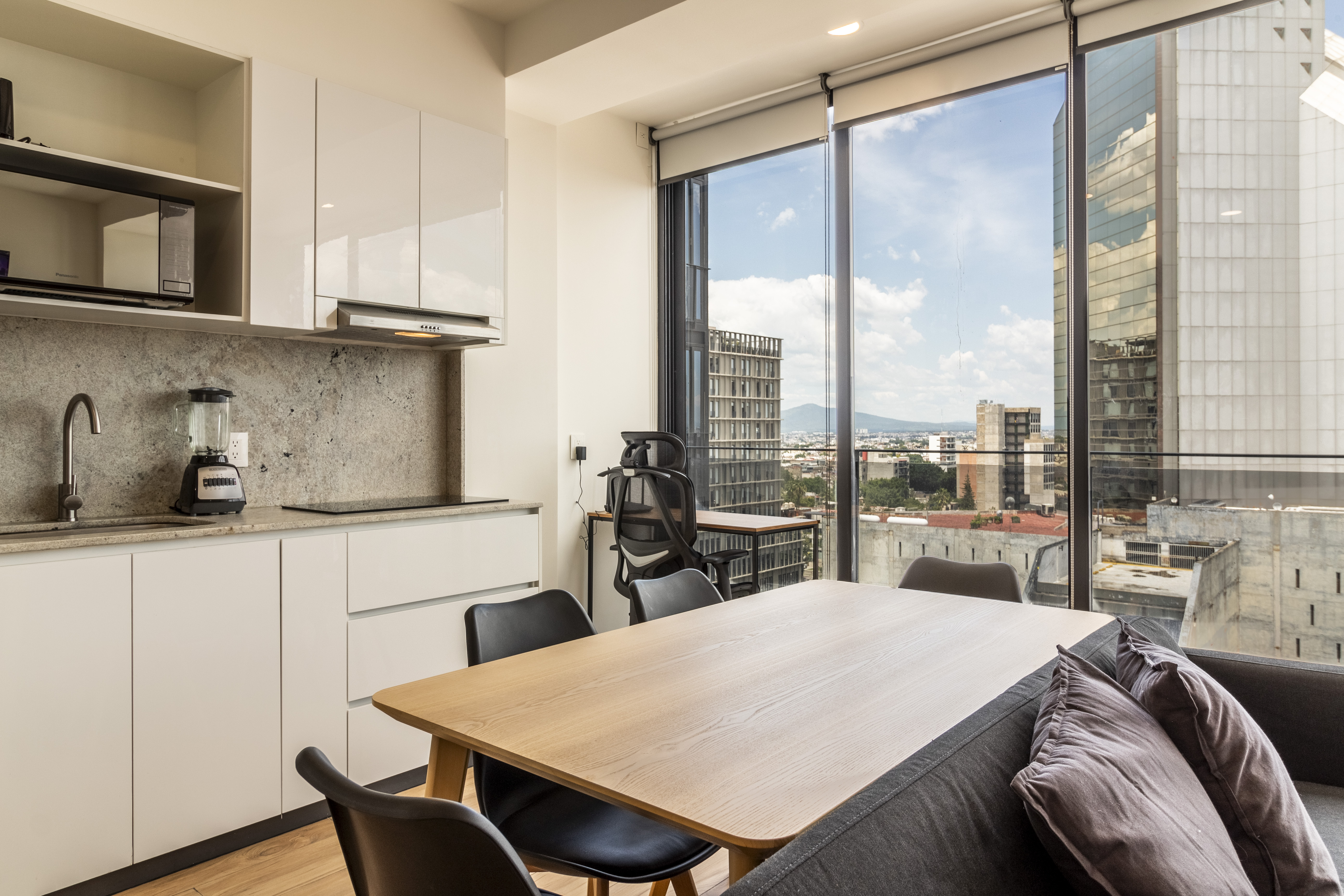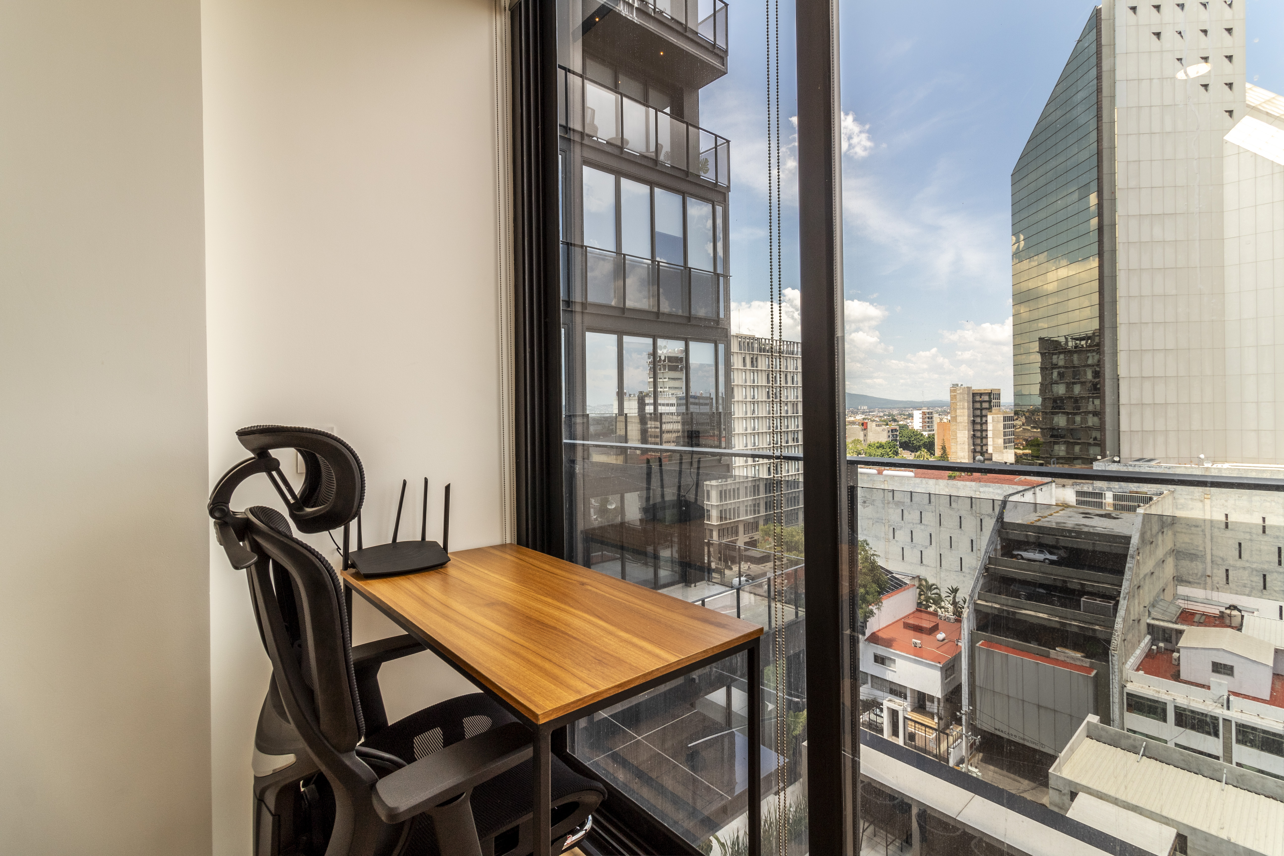 Se encuentra en una ubicación privilegiada cerca de Avenida Chapultepec, dentro de un edificio moderno con vigilancia 24/7 y recepción. Cuenta con aire acondicionado, internet rápido y todas las comodidades para una estancia práctica y agradable. Pensado para viajeros y nómadas digitales, ofrece un área de trabajo equipada con escritorio y silla ergonómica tipo gamer. La zona es vibrante, rodeada de cafés, bares y restaurantes que invitan a disfrutar del ritmo urbano.